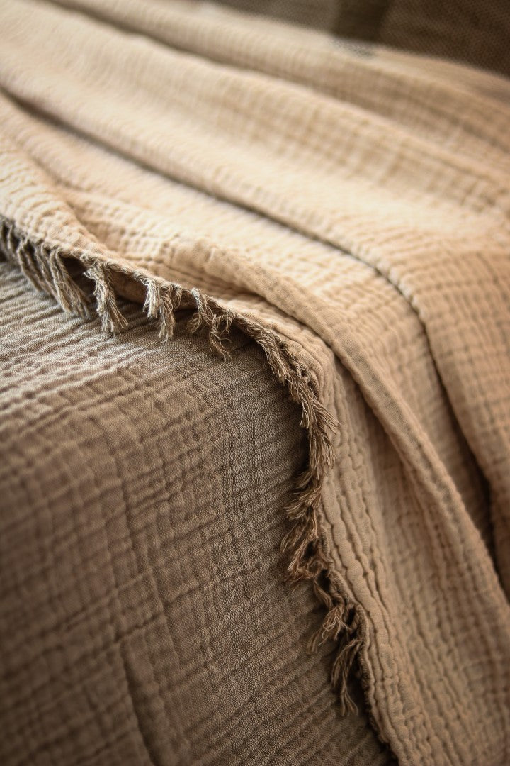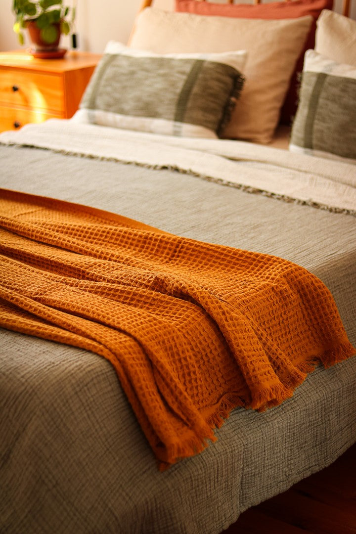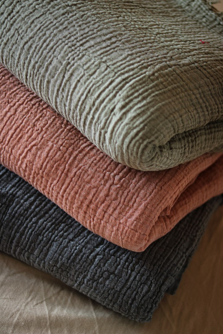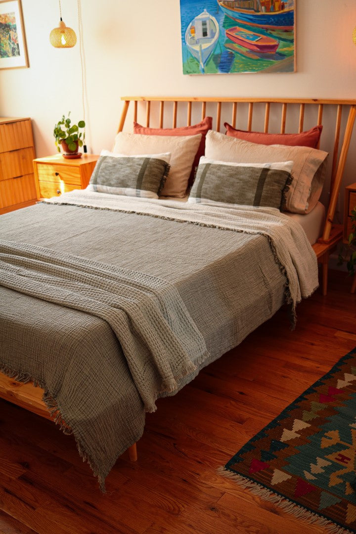 Light yet cozy, it’s perfect for layering across your bed or using as a lightweight blanket through warmer months. The washed finish gives it a gently lived-in look — understated, breathable, and timeless.