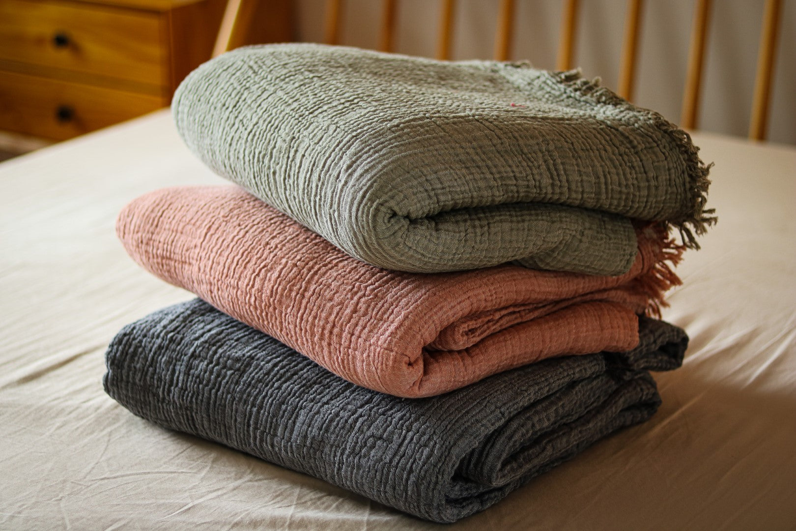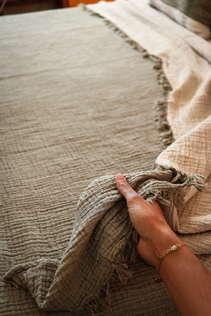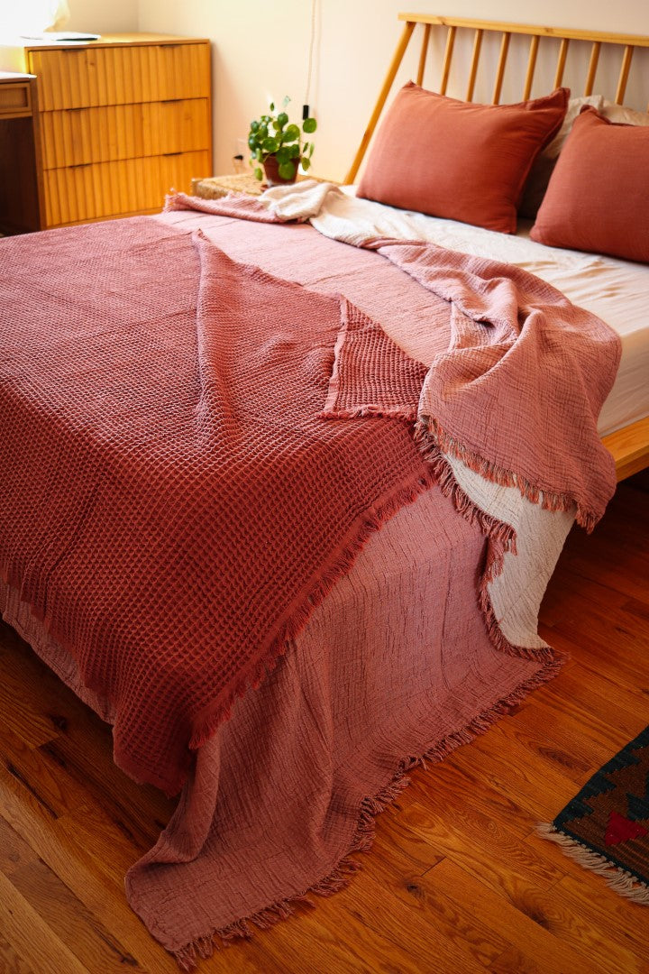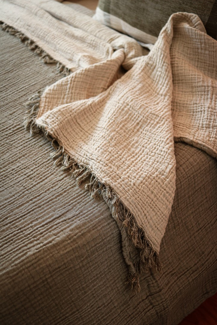 Light yet cozy, it’s perfect for layering across your bed or using as a lightweight blanket through warmer months. The washed finish gives it a gently lived-in look — understated, breathable, and timeless.