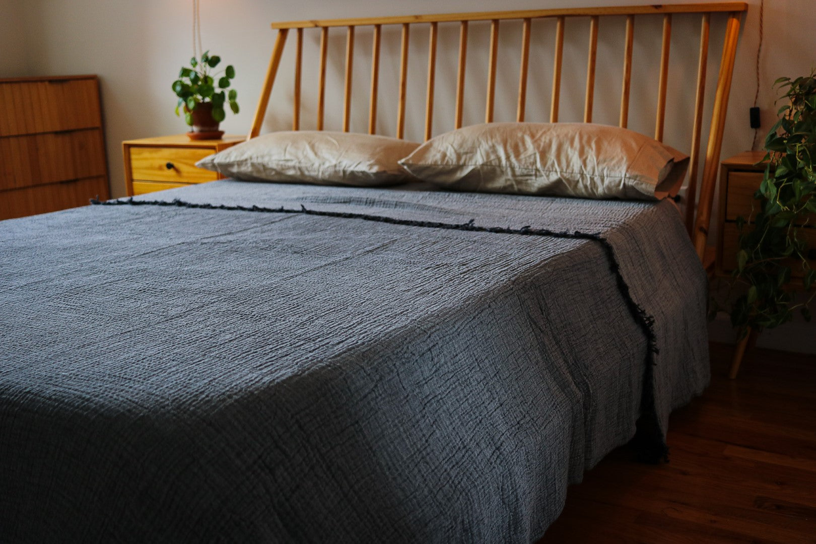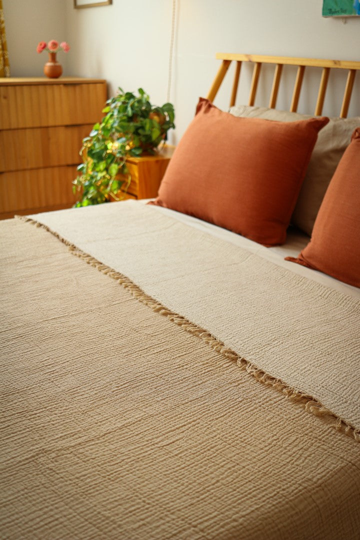 Softly crinkled and beautifully draped, our Stonewashed Cotton Bed Cover brings an effortless sense of ease to your space. Woven from 100% natural cotton and finished with hand-fringed edges, it has a relaxed texture that invites touch and softens even more with every wash.