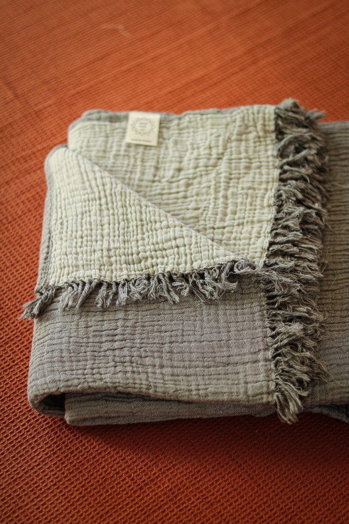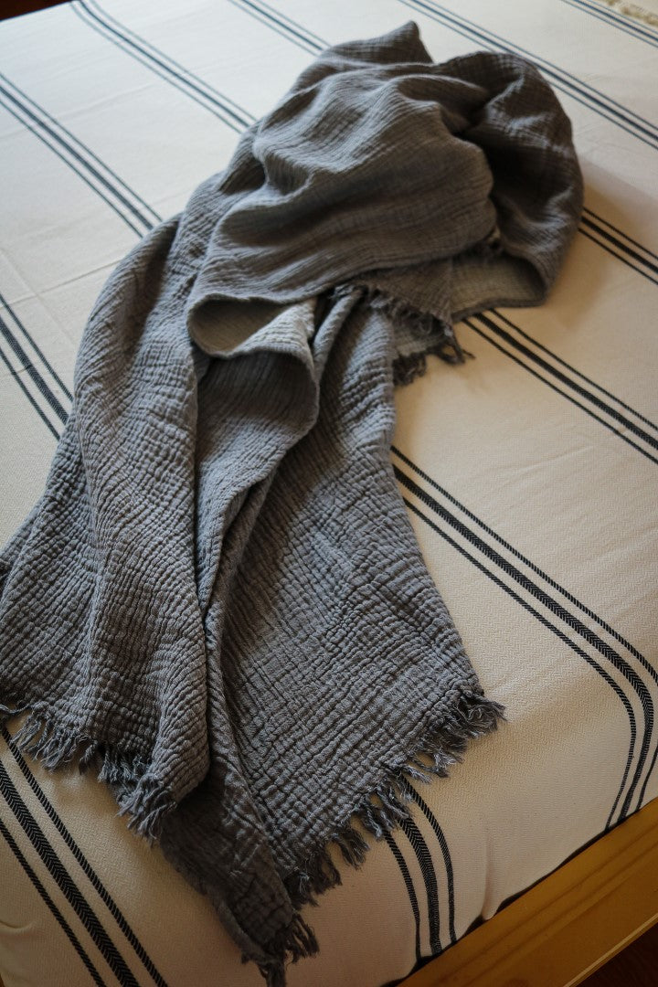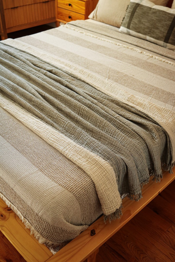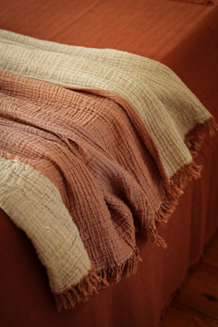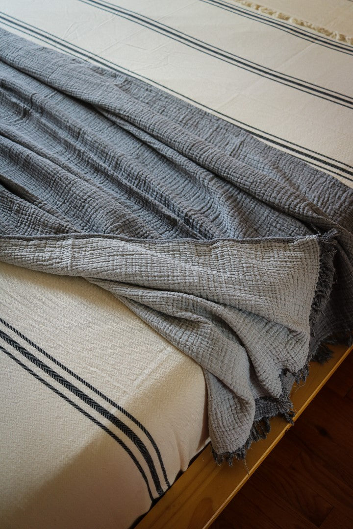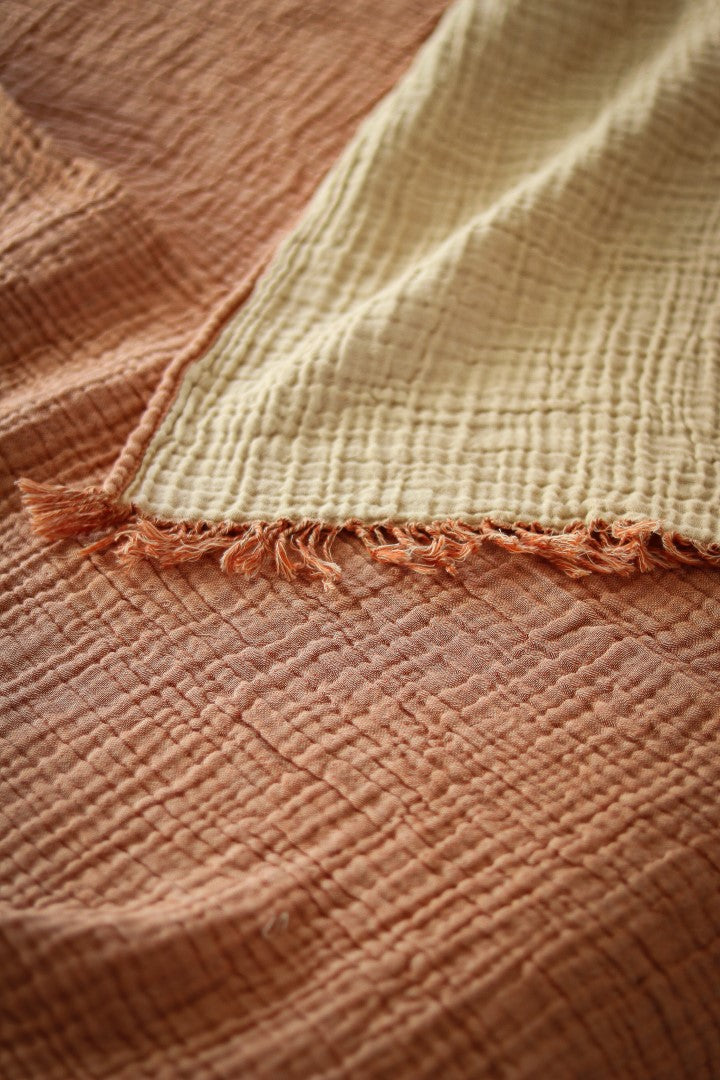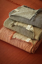 Experience the unmatched softness of The 'Crinkle' Reversible Muslin Throw, a lightweight piece defined by its delightful, cloud-like texture and gentle color story. Woven from a multi-layered, pure cotton gauze, Crinkle offers superb breathability and cozy comfort without the weight.