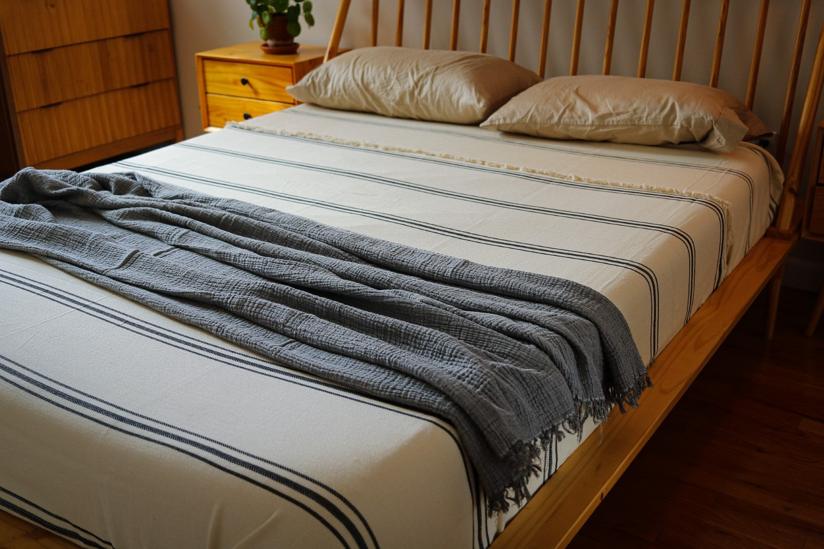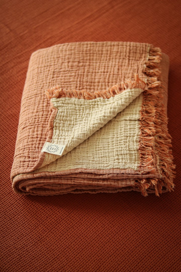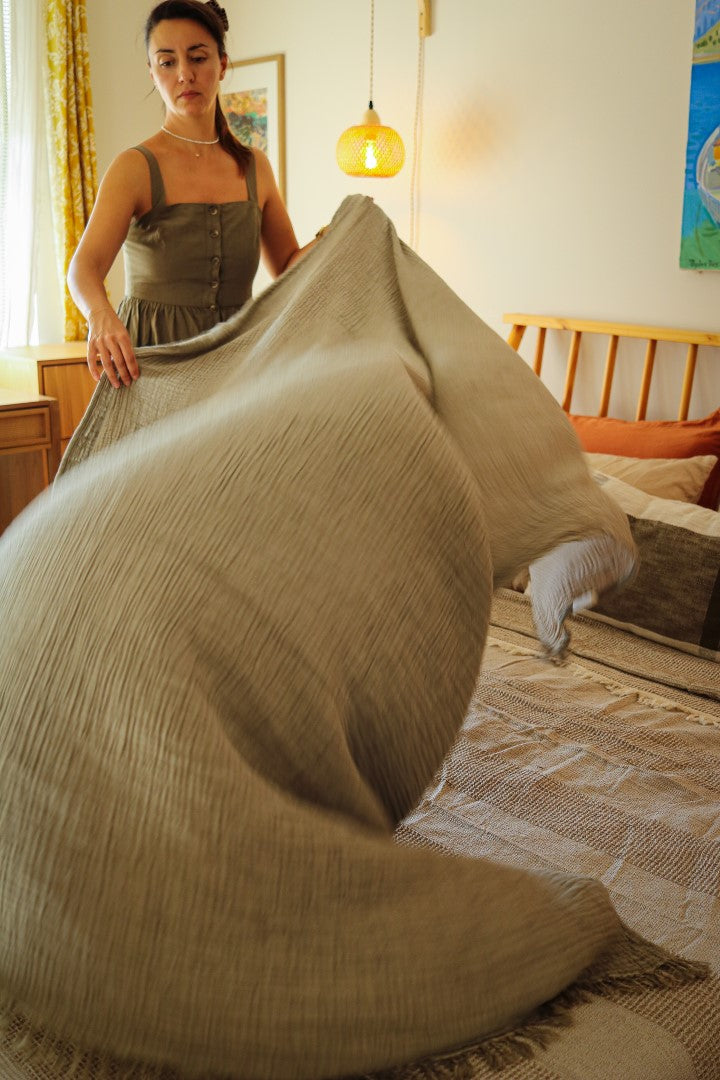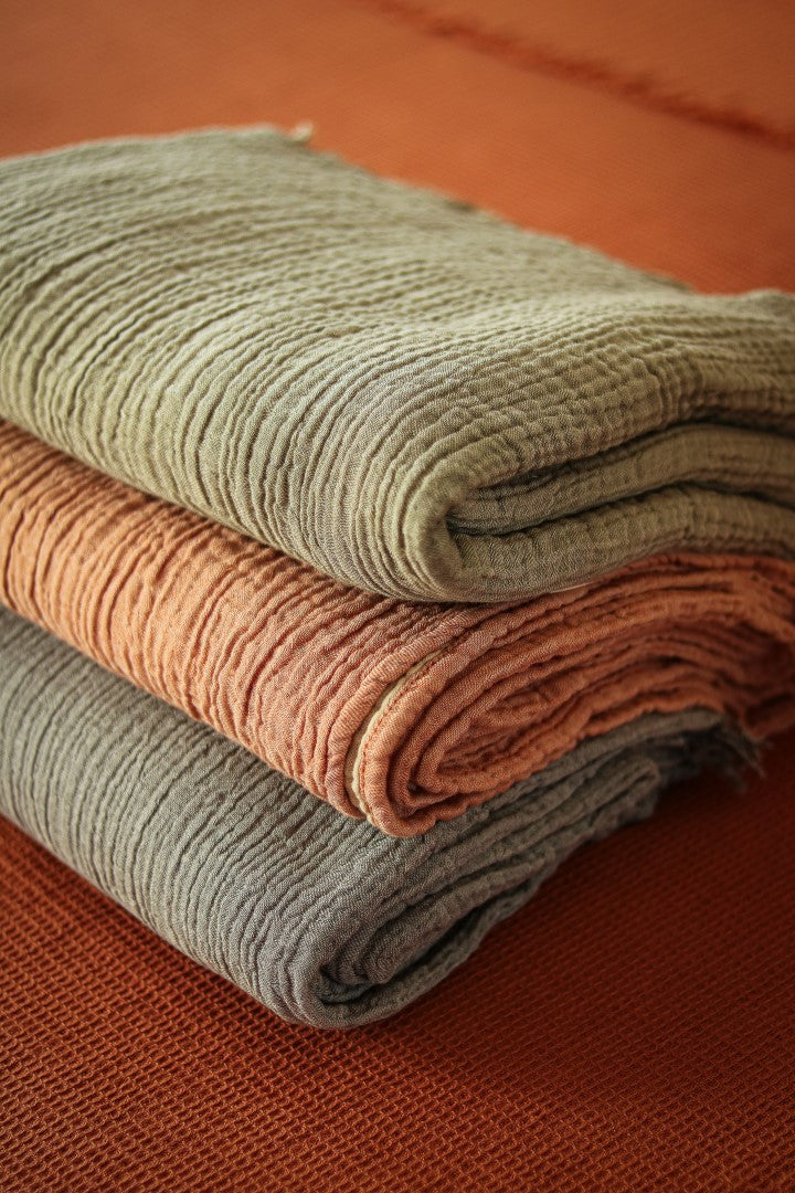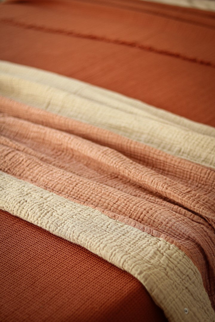Experience the unmatched softness of The 'Crinkle' Reversible Muslin Throw, a lightweight piece defined by its delightful, cloud-like texture and gentle color story. Woven from a multi-layered, pure cotton gauze, Crinkle offers superb breathability and cozy comfort without the weight.