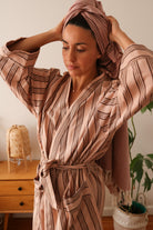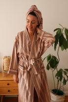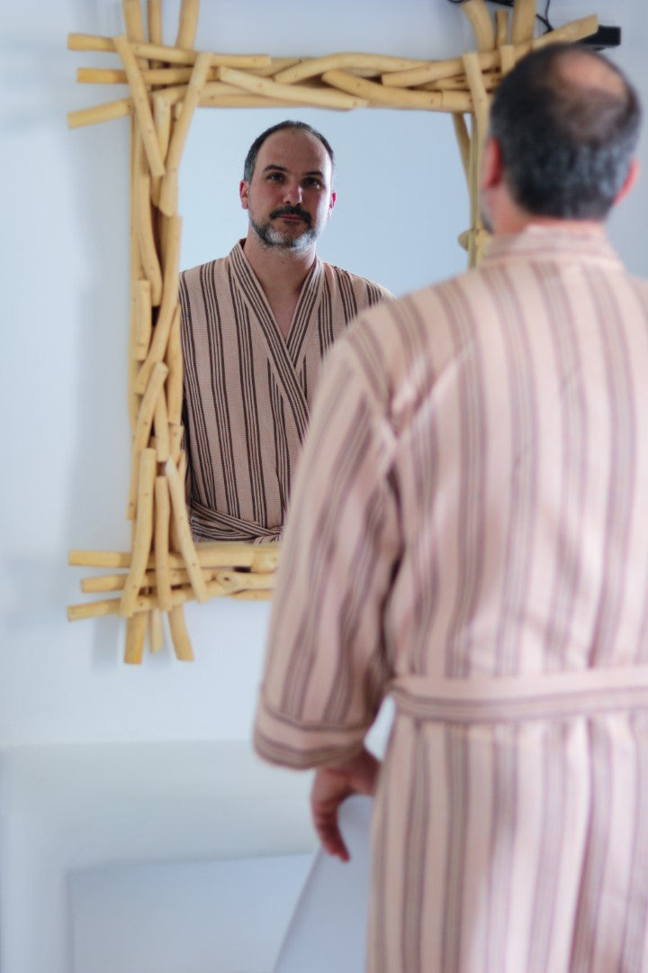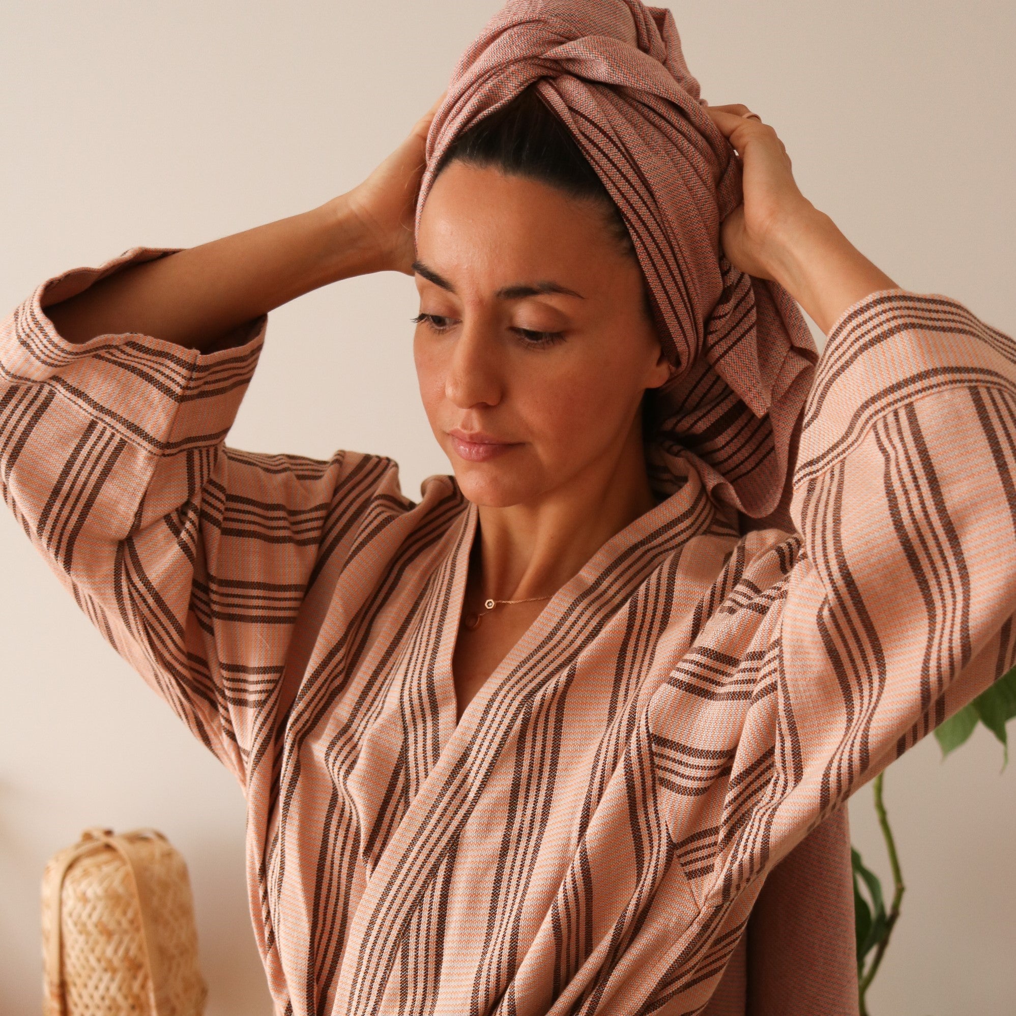 Made out of our Turkish towel material, they always smell fresh, even in the most humid environments. As a bathrobe, they are breathable so you won't overheat after the shower, and they are snag- and unravel-proof.
