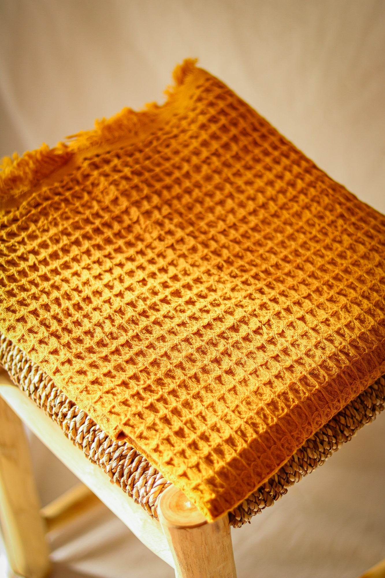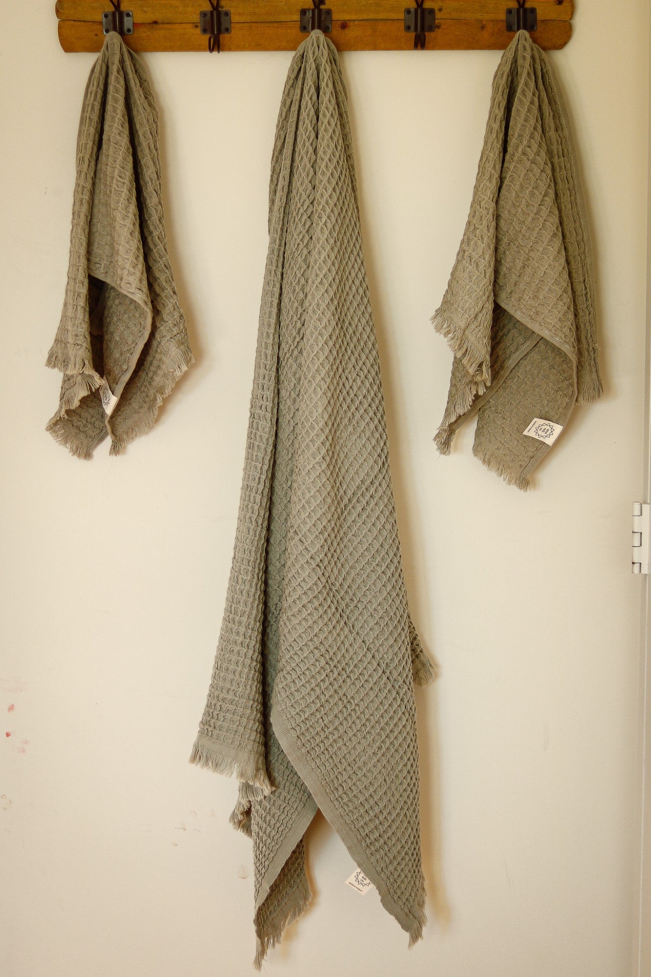 Upgrade your bathroom essentials with the modern texture of our Aegean Grid Waffle Towel. Crafted from 100% natural cotton, this towel utilizes a classic waffle weave that traps moisture effectively while remaining breathable and quick-drying.