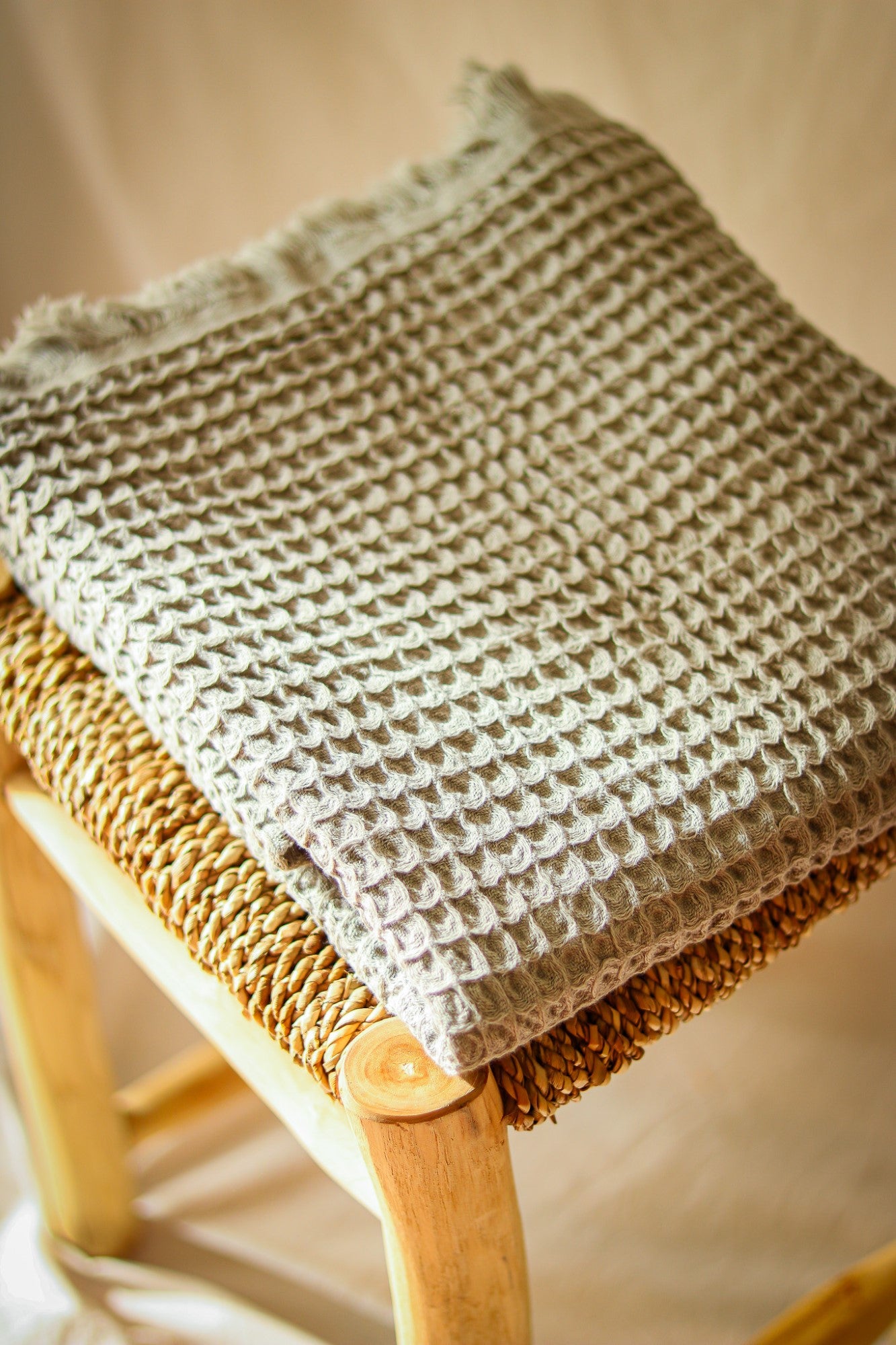 It is the ideal medium-weight towel—perfect for the bath, the beach, or as a chic travel companion. The stone-washed colors and artisan fringed edges add a touch of rustic elegance to any space.