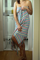 Striped Turkish towels measure 76"x37" excluding the fringe.