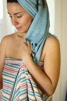 Enjoy them at home right out of the shower, or on the beach where the sand doesn't stick. They pack light for the pool or your yoga class and they can always double as a shawl, a scarf, a throw, or a blanket.