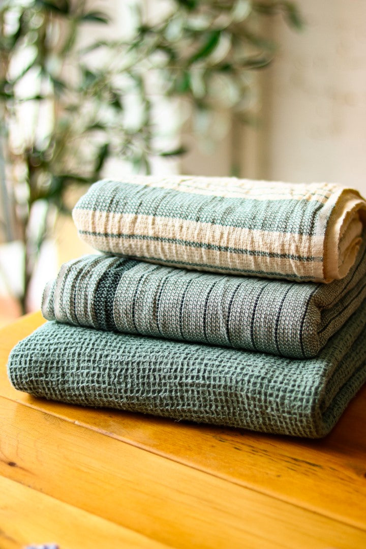 Our towels are loomed in Turkey, in Derya's hometown close to Izmir, by local artisans that follow the authentic traditional technique.