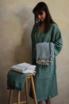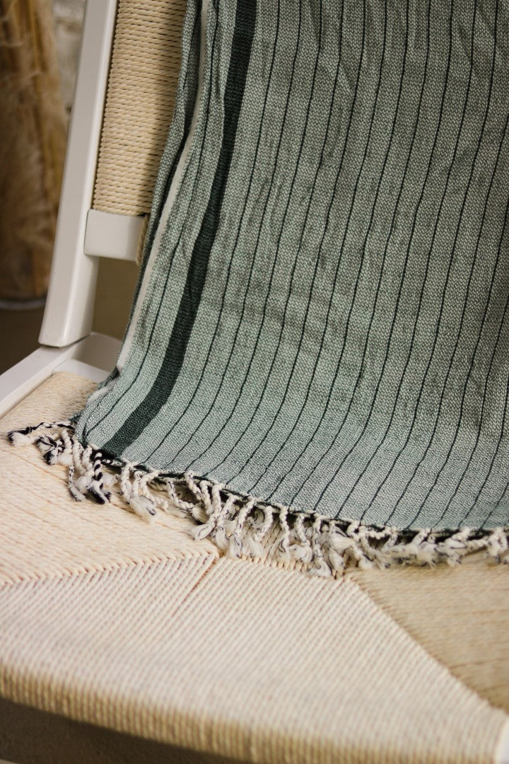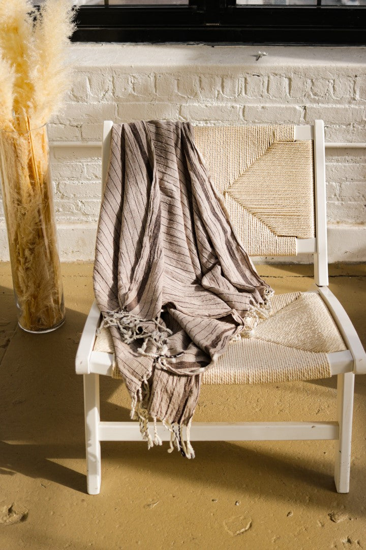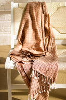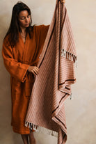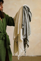 Artisanal Craftsmanship: Hand-loomed in Derya’s hometown near Izmir, Turkey, by skilled artisans using authentic techniques. Each towel features hand-tied fringes and is made from 100% long-staple Turkish cotton, ensuring durability and softness.