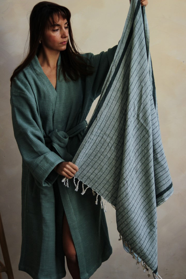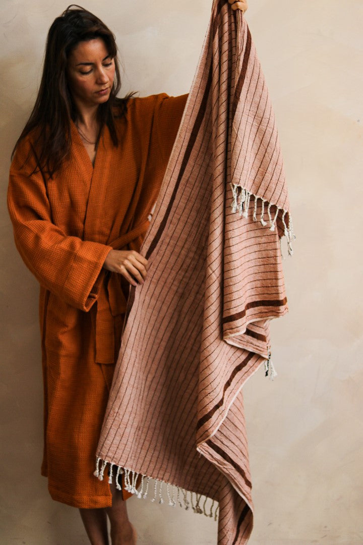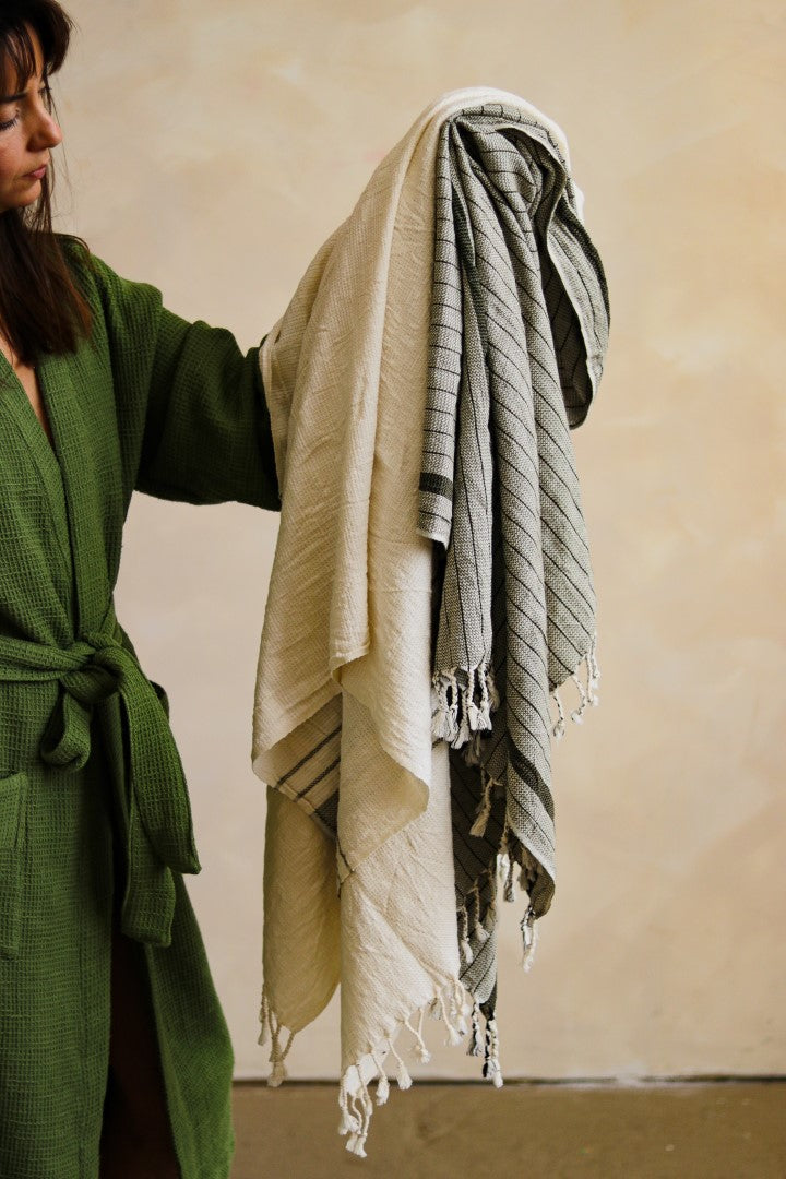Our towels are loomed in Turkey, in Derya's hometown close to Izmir, by local artisans that follow the authentic traditional technique.