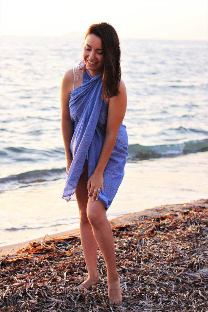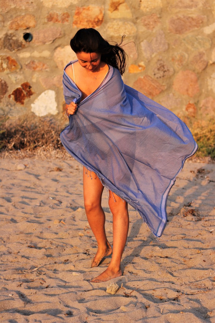 Airy, light and beautiful, Anatolico pareos are very comfortable yet stylish for warm beach days. Their fabric is loomed by our talented artisan partners in Mediterranean Turkey so delicately, that they have a silky feeling and look although they are made of 100% Turkish cotton.