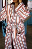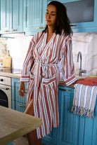 Relax at home wearing this fiery robe. We use it right out of the shower: It's the lightweight fast-drying robe you always wanted. It's cozy to wear at home every day, while some of our customers can pull off wearing it as a summer trench coat.