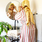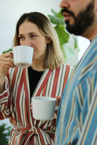 Made out of our Turkish towel material, they always smell fresh, even in the most humid environments. As a bathrobe, they are breathable so you won't overheat after the shower, and they are snag- and unravel-proof.