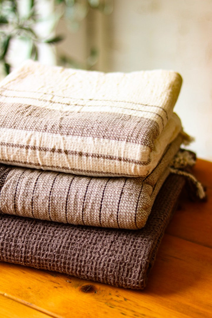 | Mauna, Kai, Luna, Elio, Sky, Brooklyn, Boho, Terra, River, Gray, Pele, Lily towels and Matia throws | 76"x37" | 37"x18" | ||