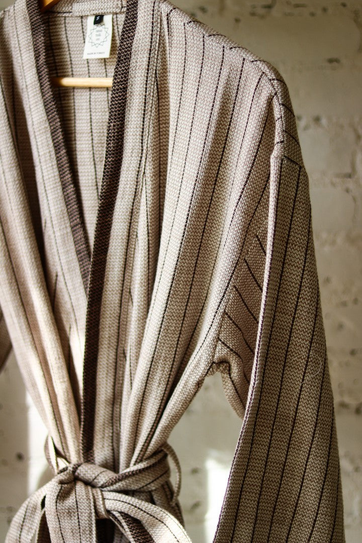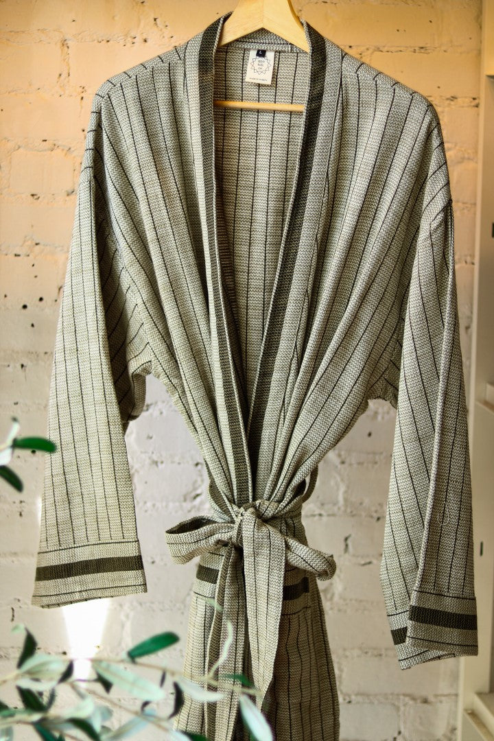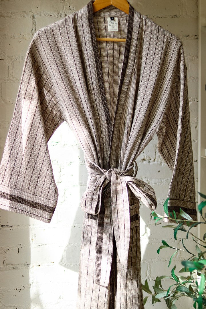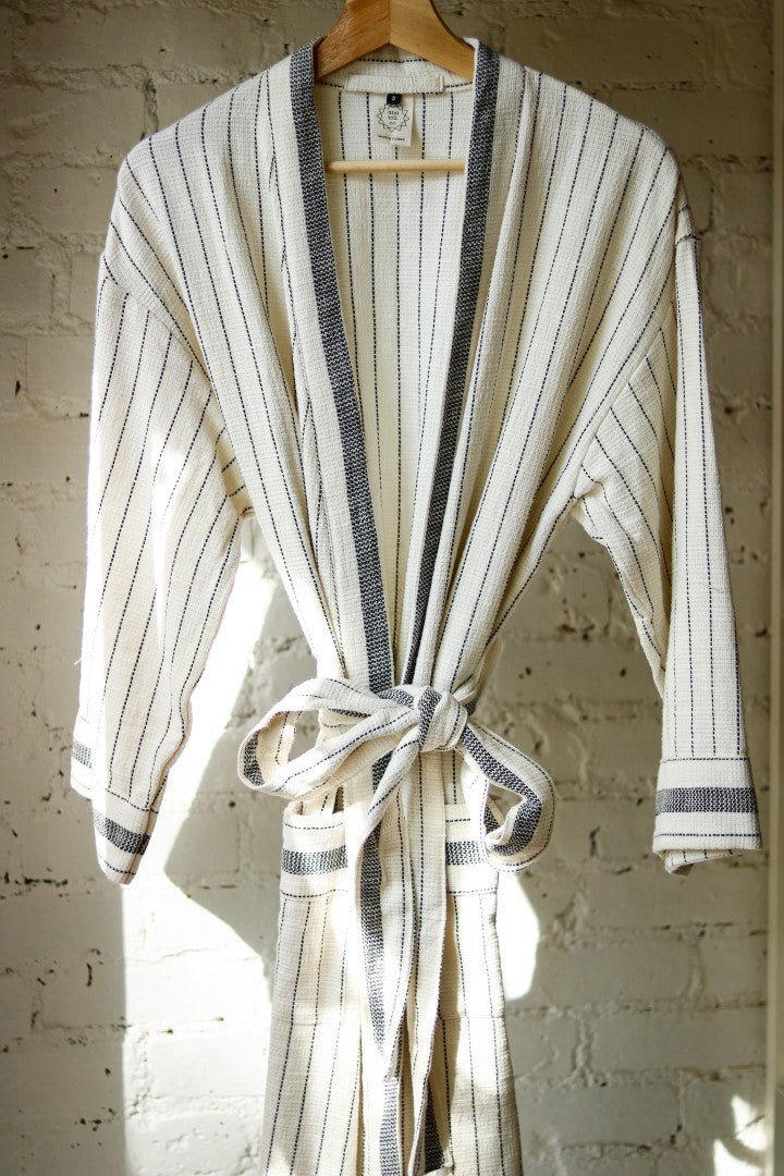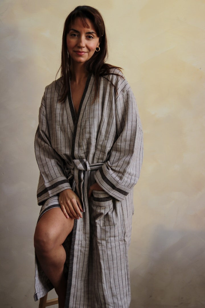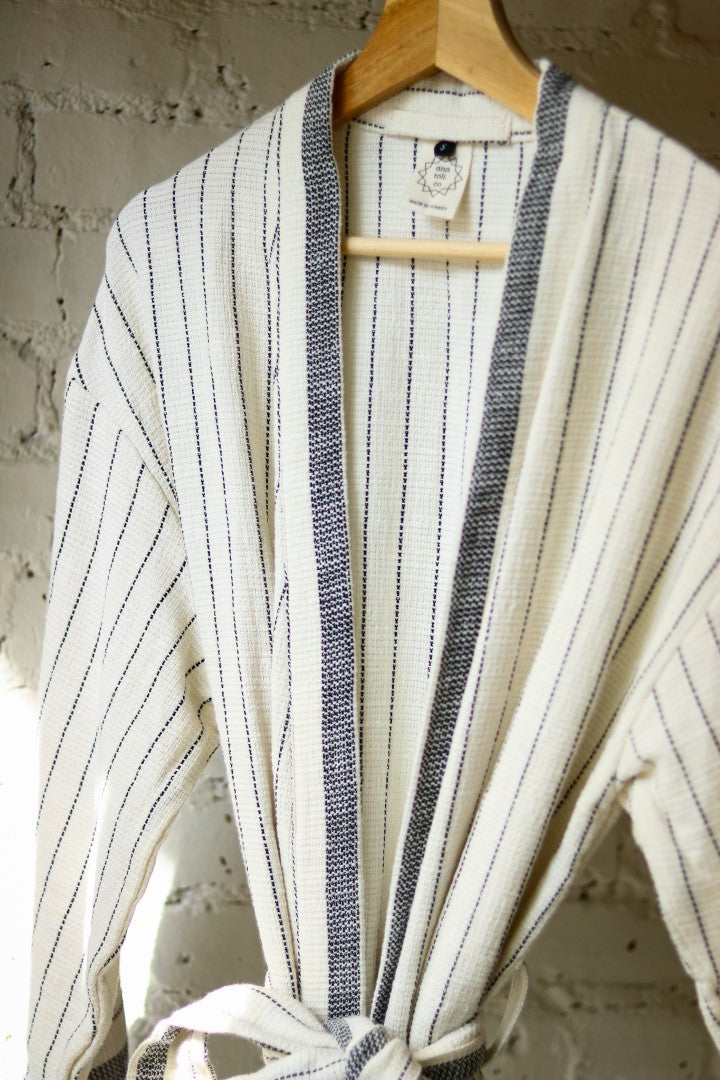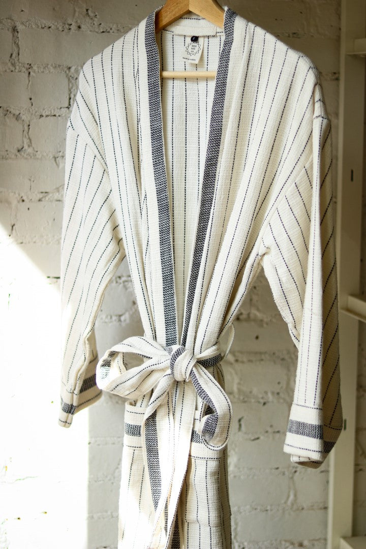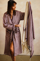 Inspired by the bold sophistication of classic pinstripes, the New York Robe brings timeless urban elegance into your everyday routine. Designed to evoke the spirit of a traditional Turkish bathhouse, this robe invites you to slow down, savor the moment, and wrap yourself in luxury right out of the shower.