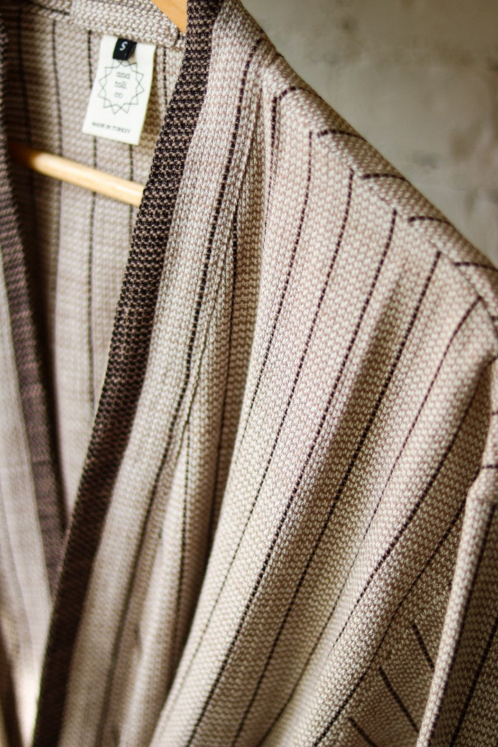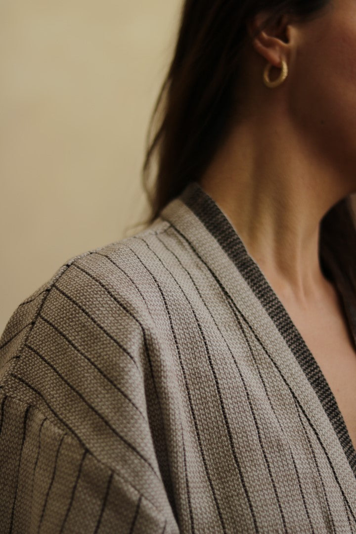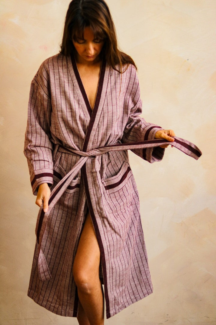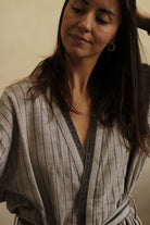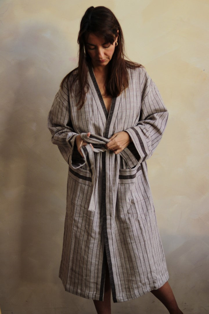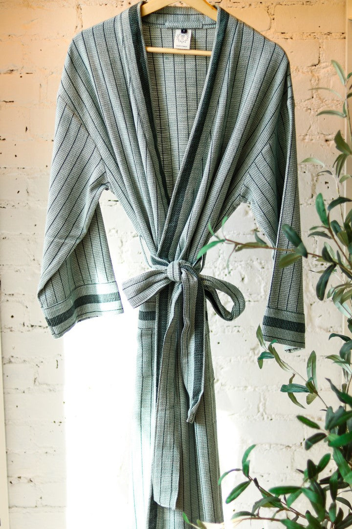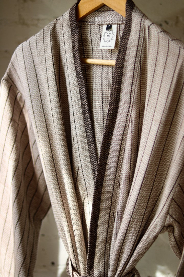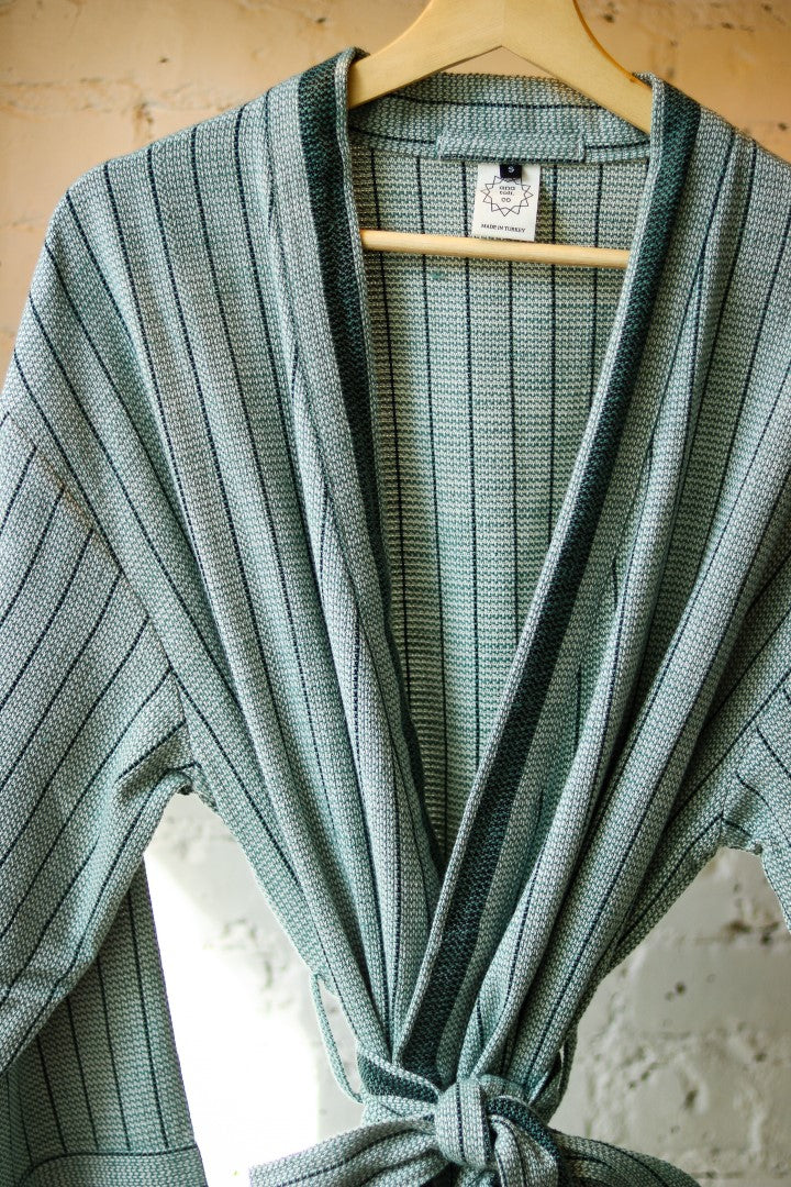 Inspired by the bold sophistication of classic pinstripes, the New York Robe brings timeless urban elegance into your everyday routine. Designed to evoke the spirit of a traditional Turkish bathhouse, this robe invites you to slow down, savor the moment, and wrap yourself in luxury right out of the shower.