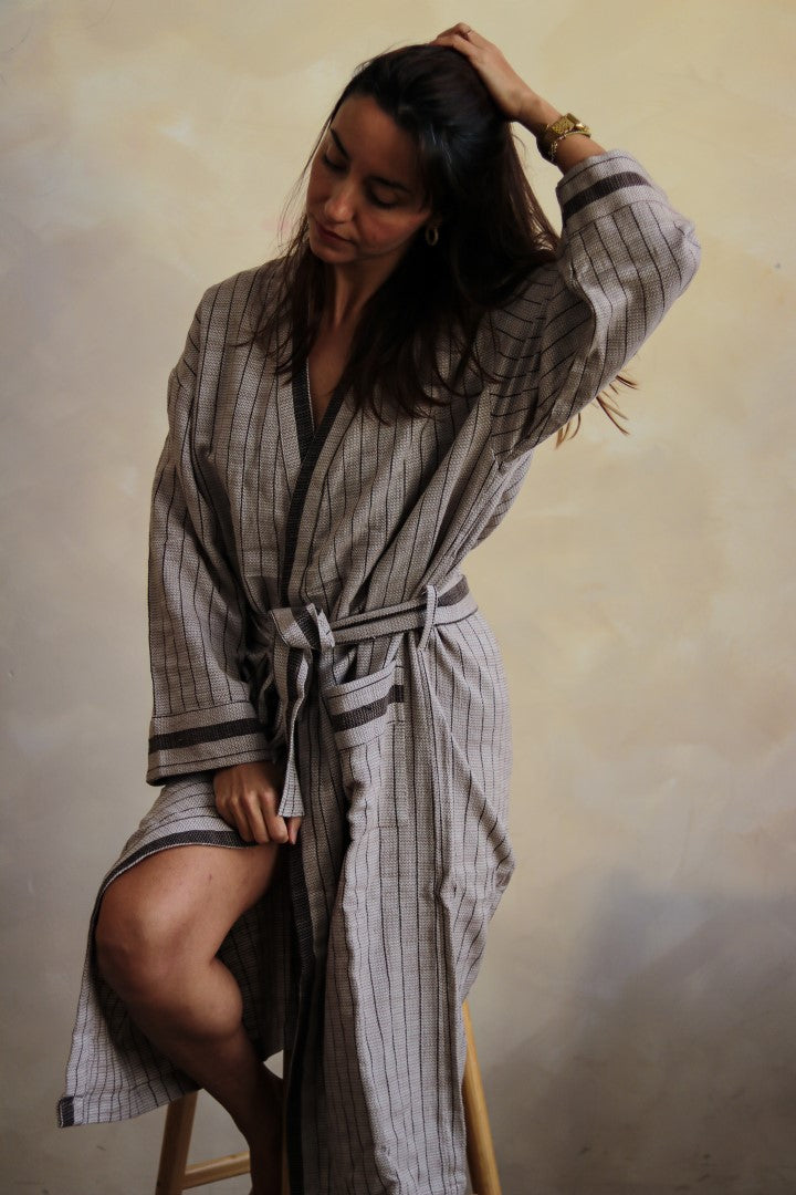 Inspired by the bold sophistication of classic pinstripes, the New York Robe brings timeless urban elegance into your everyday routine. Designed to evoke the spirit of a traditional Turkish bathhouse, this robe invites you to slow down, savor the moment, and wrap yourself in luxury right out of the shower.
